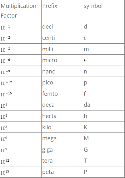 Multiples and sub multiples of units in S.I system: