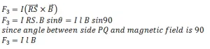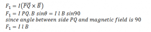Consider a rectangular coil of length l and breadth b carrying a current I placed in a uniform magnetic field B. θ be the angle between plane of rectangular coil and magnetic field. The magnitude of experienced by each side of loop is given below.