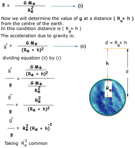 Let g be the value of acceleration due to gravity at the surface of earth and g’ at a height h above the surface of earth.