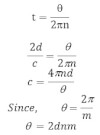If ‘d’ be the distance between mirror (m1) and (m2) and ‘c’ be the velocity of light, then time taken by light to travel from m1 to m2 and returning back to m1 is given by,