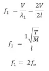 If u be the velocity of wave and f1 be the frequency of wave in this mode of vibration.