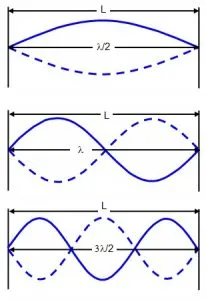 In this mode of vibration, the string vibration in one segment. This there are two nods at fixed ends and an antinode in between them. If ‘λ’ be the length of string and λ0 be the wave length of wave in this mode of vibration.