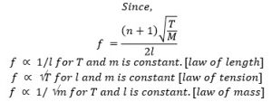 In this way, for the 4th, 5th …… modes of vibration in the stretched string the frequency.